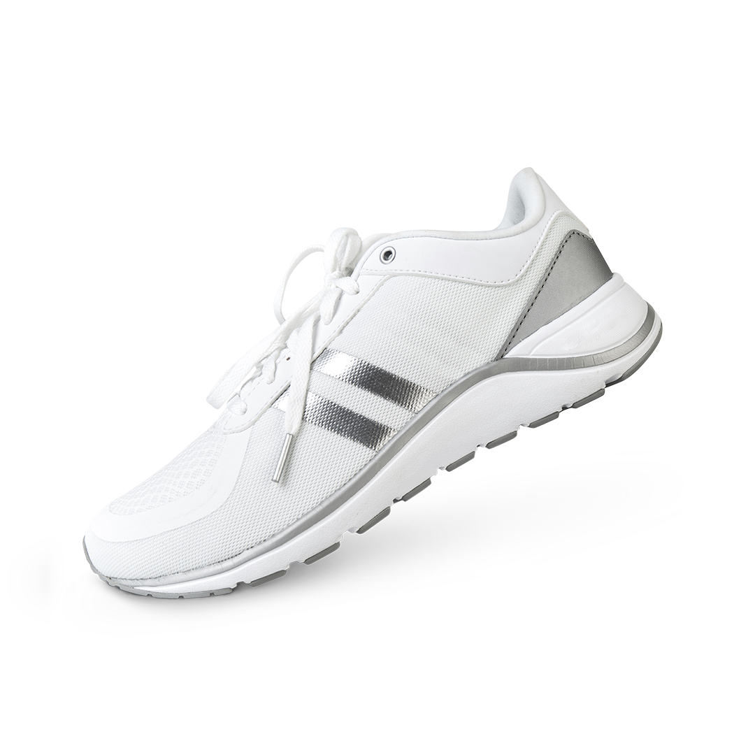 Fehér és ezüst futócipő